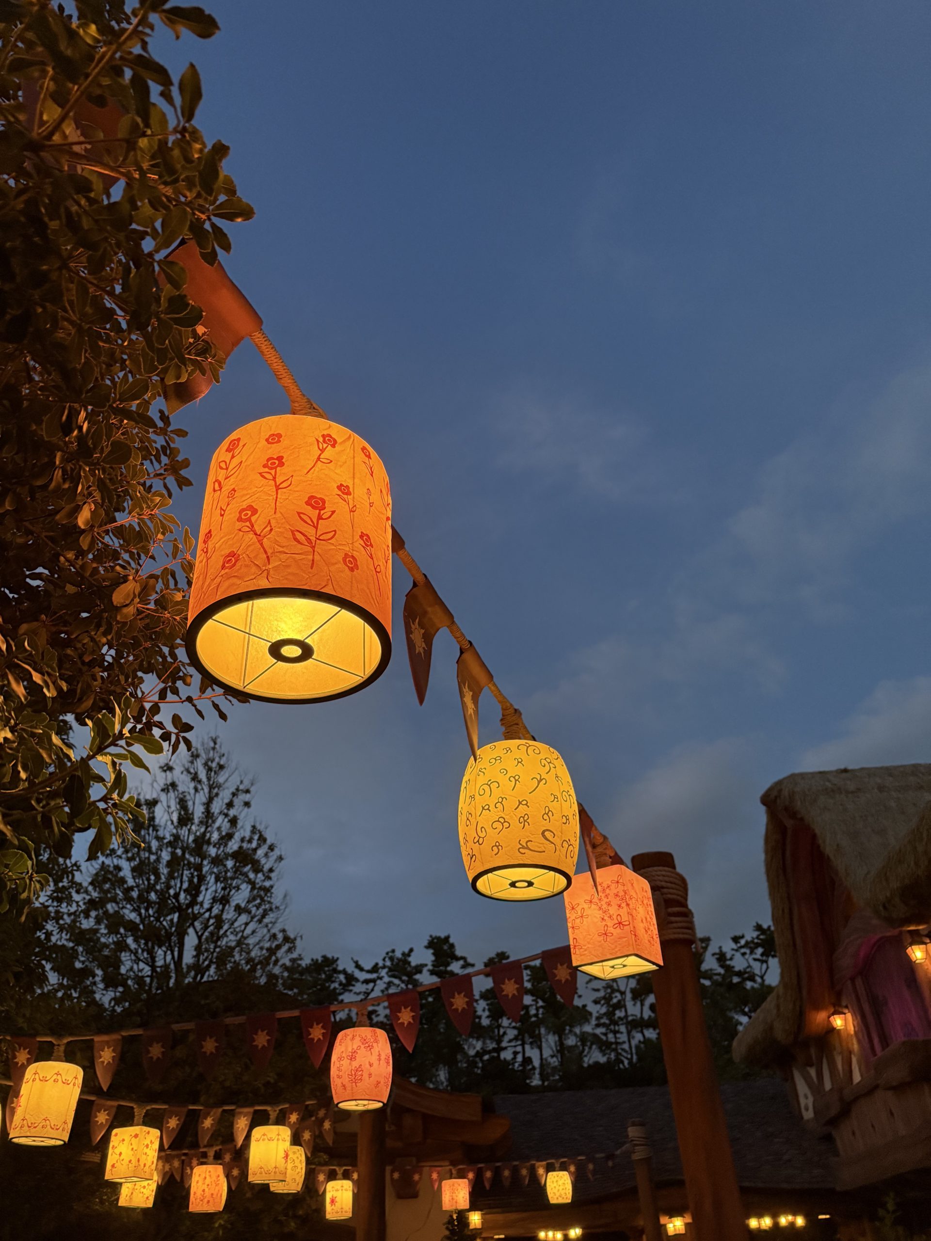 だんだん日が沈む時間帯になってきて、アトラクションの待機列に飾ってあったランタンが綺麗でした。ラプンツェルのアトラクションも90分超えのようだったので、プレミアアクセスの恩恵がとても大きく感じました・・・。